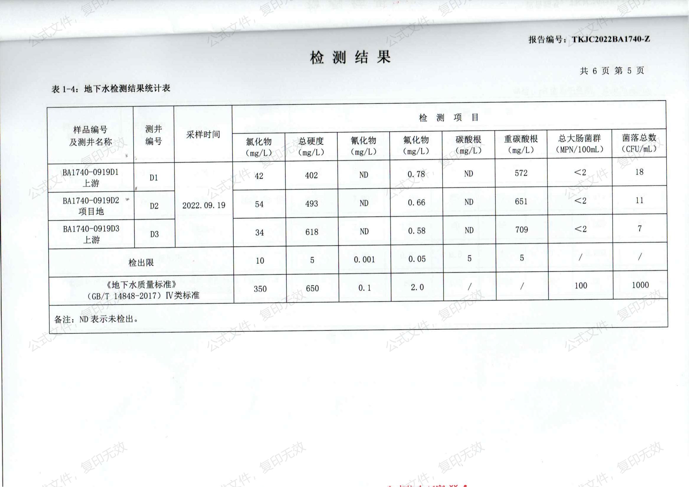 2022年地下水、土壤检测报告